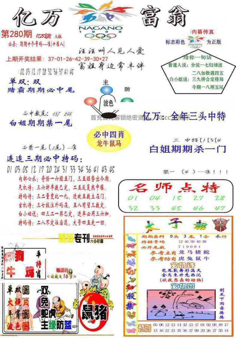 280期:绝杀二尾【4尾+8尾】开:鼠42中